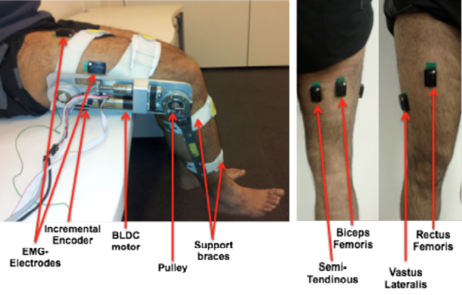 This demonstrator shows a new approach to control a wearable knee joint exoskeleton driven through the wearer’s intention. A realistic bio-inspired musculoskeletal knee joint model is used to control the exoskeleton. This model considers changes in muscle length and joint moment arms as well as the dynamics of muscle activation and muscle contraction during lower limb movements. Identification of the model parameters is done through an unconstrained optimization problem formulation. A control law strategy based on the principle of assistance as needed is proposed. This approach guarantees asymptotic stability of the knee joint orthosis and adaptation to human-orthosis interaction. Moreover, the proposed control law is robust with respect to external disturbances. As shown in the below video, experimental validations are conducted online with healthy subject during flexion and extension of their knee joint. The proposed control strategy has shown satisfactory performances in terms of tracking trajectory and adaptation to human tasks completion.