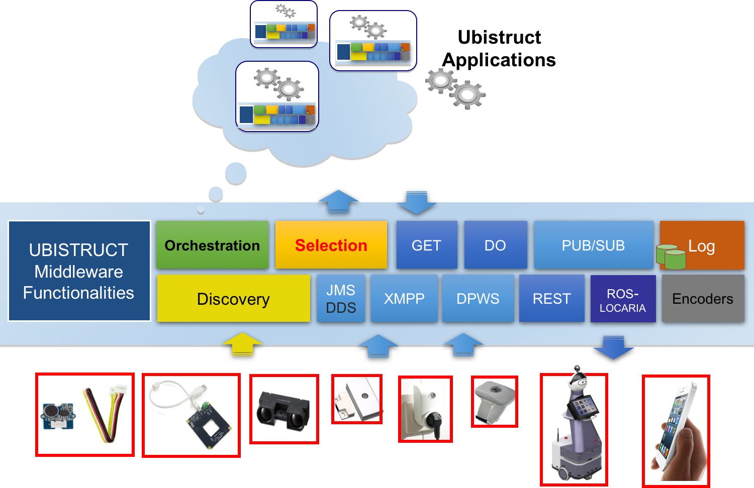 Ubistruct is a service-oriented middleware for the internet/web of things. The architecture of the middleware is structured around a set abstract functionalities that simplify the registration, the discovery, the selection and orchestration of real world objects and services, which evolve in the cyber-physical ecosystem. The communication with and between the objects and services is handled through direct invocation or through publish subscribe. The latter are simplified for the programmer by using simple key words (Do, GET, Publish, Subscribe-To). The implementation is based on Java and Communication libraries such as HTTP, XMPP, JMS and Sockets.