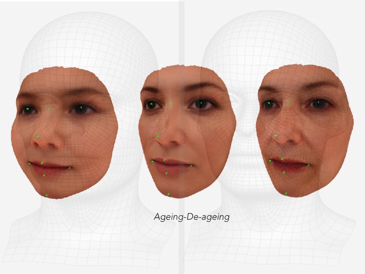 Le thème biométrie est focalisé plus spécifiquement sur la biométrie cachée qui est un domaine qui est à l’intersection de la biométrie et de l’ingénierie biomédicale (imagerie médicale, etc.). Les travaux de l’équipe sont principalement ciblés sur l’extrémité supérieure du corps humain (e.g. visage, cerveau) et abordent la modalité « biométrie cachée » selon deux dimensions : (i) la dimension spatiale pour la caractérisation spatiale 2D/3D du cerveau humain à partir d’images IRM dans le contexte de l’identification d’individus ; (ii) la dimension temporelle pour la modélisation 2D/3D du vieillissement naturel, pathologique ou comportemental du visage et aussi du rajeunissement du visage (i.e morphing adulte-enfant).